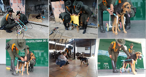Un canino de raza criolla víctima de diferentes patologías que le afectaron su movilidad, hoy vuelve a caminar gracias a un singular caminador ortopédico diseñado especialmente para él y fabricado por nuestros uniformados de la especialidad de Carabineros.Se trata de Capitán un perro de aproximadamente dos años de edad que está bajo el cuidado de su propietaria, quien desde hace varios meses lo convirtió en un miembro más de su familia y su lugar de trabajo ubicados en el municipio de Villa del Rosario, en límites con el vecino país de Venezuela.Hace cerca de seis meses Capitán sufrió varias patologías, entre ellas una enfermedad respiratoria y la fiebre de garrapata, las cuales le afectaron el sistema nervioso perdiendo parcialmente la movilidad en las extremidades traseras.Este caso fue conocido inicialmente por nuestros uniformados del cuadrante de la Estación de Policía de Villa del Rosario. Luego por competencia, personal del Grupo de Guías Caninos de la Policía de Carabineros se apodero de la situación y comenzó a hacer realidad el que sería el proyecto de bienestar animal más gratificante conocido.Enfermeros caninos conjuntamente con su propietaria inicialmente hicieron la valoración física del estado de salud de 'Capitán', estableciéndose la necesidad de aplicar un tratamiento médico-veterinario el cual fue asumido por los miembros de nuestra institución que involucró el suministro de medicamentos para recuperación dermatológica, terapias de movilidad y procedimientos neumológicos.Actualmente 'Capitán' evoluciona favorablemente. Su respiración ya es normal y su piel con manchas negras y café volvió a tomar el típico color oscuro de su raza criolla, evidenciándose la ausencia de lesiones cutáneas que alguna vez lo afectaron.El proceso de recuperación abarcó una segunda fase, la cual era contribuir a su movilidad, por lo cual en conjunto con la fundación 'Armando sonrisas con tubos de PVC' se gestionó la elaboración del diseño a la medida de un caminador ortopédico canino, el cual fue fabricado por nuestros policiales de Carabineros, labor que se extendió durante aproximadamente una semana.Con esta ayuda ortopédica 'Capitán' logra movilizarse con mayor facilidad apoyando sus extremidades traseras. Adicional a este caminador, se diseñó un cargador en tela conocido como 'mameluco' que contribuye a las terapias de movilidad que continuarán realizándose bajo la supervisión de los enfermeros de los Guías Caninos de nuestra institución.El proceso de rehabilitación del canino se dio en un tiempo récord, todo como resultado a una acción articulada entre su propietaria, la fundación de apoyo a las comunidades vulnerables y nuestro Grupo de Guías Caninos. 'Capitán' seguirá bajo el cuidado de los "Ángeles verdes" quienes en su labor social aportan al bienestar animal en la zona de frontera.