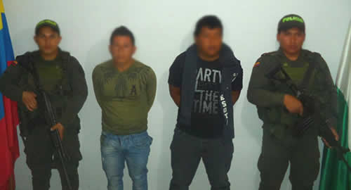 Providencia, Nariño. Unidades policiales logran capturar a dos presuntos integrante de las Redes de Apoyo al Terrorismo del ELN haciendo propaganda subversiva.
