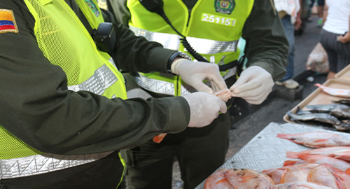 La Policía adelanta operativos de control a la venta de pescado en el Mercado de Bazurto, con el objetivo de verificar el estado de los productos, control de pesos y medidas, garantizando la salud de todos los compradores que acuden a la central mayorista de la ciudad.Con ocasión de la Semana Santa, unidades de la Policía Ambiental y Ecológica, verifican los tamaños de los peces que son comercializados en la Central de Abastos, incautando los productos que no cumplen con las medidas establecidas. Al momento de adquirir pescado, es importante que observe las siguientes recomendaciones: Revisar su estado, olor, color y las condiciones higiénicas y de salubridad.Identificar Ojos Brillantes, negros y convexos.Agallas rojas y húmedas.Escamas brillantes.Carne firme y elástica.Adquiera el pescado en establecimientos reconocidos y de confianza, que cumplan con las medidas sanitarias establecidas para su conservación y garanticen las condiciones básicas de higiene. Atención a las manos de las personas que manipulan el pescado que le venden. Deben estar limpias y sin laceraciones o heridas en su piel; además, es recomendable que tenga una indumentaria que evite la contaminación de los productos.Los productos que se expenden al público en exhibidores abiertos deben mantenerse en cama de hielo; estos pescados deben tener un color característico, sin presencia de sangre u otras partículas que lo contaminen.
