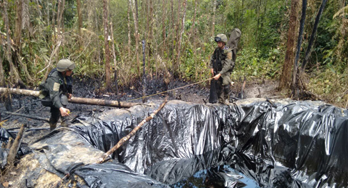 Tumaco, Nariño. En diferentes operativos fueron destruidas varias refinerías ilegales para el procesamiento del crudo.