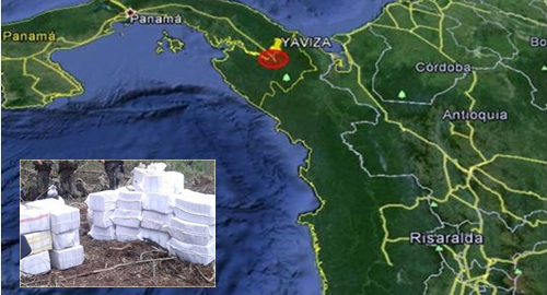 La efectiva y oportuna cooperación internacional en contra del narcotráfico, permitió adelantar un operativo mediante labores previas investigativas adelantadas por el Grupo de Investigación Criminal de la Dirección de Antinarcóticos, en coordinación con la oficina DEA Cartagena y el Servicio Nacional de Fronteras SENAFRONT de Panamá, logrando hallar e incautar 917 kilos de clorhidrato de cocaína.De acuerdo con información obtenida por el personal de investigadores de la Policía de Antinarcóticos, se tuvo conocimiento, de un grupo narcotraficante enviaría un posible cargamento de estupefacientes desde la costa pacífica colombiana, más exactamente el sector de Puerto Merizalde, Punta Ají en el departamento del Cauca, con destino final países de Centro y Norte América.Al tomar contacto con el personal de la oficina DEA Cartagena y el Servicio Nacional de Fronteras de Panamá, se adelantó un operativo en el sector de Yavisa Darien – Panamá, hallando en medio de la vegetación, una caleta bajo tierra, y en ella, varias lonas de fibra color blanco que contenían 917 kilos de clorhidrato de cocaína. Con esta incautación se debilita ostensiblemente las finanzas de las organizaciones narcotraficantes que tienen como eje la costa pacífica colombiana para el envío de las sustancias estupefacientes. De acuerdo a la información del ente investigador, los 917 kilos de clorhidrato de cocaína están avaluados en 11 millones de dólares aproximadamente, de esta manera se estima se ha evitado la comercialización de cerca de 2.292.500 dosis del estupefaciente en el narcomenudeo.