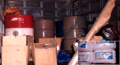 Bogotá D.C. Incautados 904 kilos de sustancias químicas transportadas al interior de un camión tipo furgón.