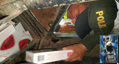 La Policía Fiscal y Aduanera en trabajo conjunto con la Dirección de impuestos y aduanas Nacionales, adelantaron  un operativo en inmediaciones del puesto de control ubicado en el sector del Puente Laureano Gómez.Mediante previas labores de verificación e información suministrada por diferentes  fuentes, lograron la inmovilización de un bus de servicio interdepartamental provenientes de la Guajira (Maicao).Al interior en caletas ocultas en diferentes bodegas del bus se ubicó la gran cantidad de mercancía de contrabando dejando como resultado:Aprehensión de 9.000 cajetillas de cigarrillos de diferentes marcas de licor extranjero.100 botellas de licor avaluados por la  DIAN  en $ 31.331.200. Esta mercancía habría  ingresado de manera ilegal al territorio aduanero nacional y al parecer serían comercializados en toda la ciudad; esta aprehensión se realiza ya que no se encontraban amparadas en documentación que acredita la legalidad de la misma; la aprehensión se realiza de conformidad con el  artículo 502 del decreto 2685 del 1999. Estos operativos se vienen realizando en todo el departamento con el fin de contrarrestar estas actividades ilícitas las cuales no solo podrían afectar la salud o la integridad física de quien consume o hace uso de estos elementos, sino que también va en contravía de los intereses comunes y públicos del país, al no percibir las administraciones locales y regionales los recursos de los impuestos que dejan de pagar las mercancías que ingresan ilegalmente al territorio aduanero nacional.