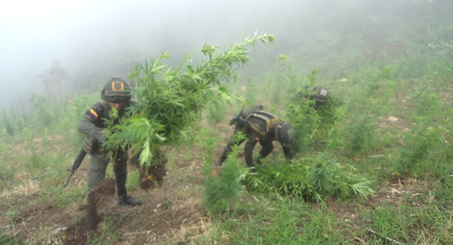 Como parte de la política de convivencia y seguridad ciudadana y a la estrategia de intervención integral contra el narcotráfico, unidades adscritas al Escuadrón Móvil de Carabineros No. 51 del Departamento de Policía Norte de Santander lograron hallar varios cultivos de matas de coca y marihuana.El procedimiento se dio gracias a informaciones suministradas por integrantes de la Red de aliados para la prosperidad que daban cuenta de que en una finca ubicada en la vereda La Allanada del corregimiento de Pueblo Nuevo, ubicada a cuatro horas en vehículo desde el municipio de Ocaña, se encontraban sembrados entre matas de plátano unos cultivos de coca y marihuana. Por tal motivo se procedió a coordinar el operativo con el Escuadrón móvil de Carabineros EMCAR No. 51 y la Seccional de Investigación Criminal SIJIN de la Policía con el fin de desplazar las unidades policiales hasta los cultivos ilegales.En horas de la madrugada, las unidades policiales ubicaron en la zona montañosa un lugar en el que se evidenciaba un gran daño ecológico por haber sido talado en un radio de 4 hectáreas más de 200 árboles para allí cultivar 6 mil matas de coca y 4 mil de marihuana y una estructura rústica que era utilizada para el secado de la marihuana.En el procedimiento no hubo capturas, pero en el sitio fueron rotuladas y embaladas varias plantas de coca y marihuana y para ser puestas a disposición de la Fiscalía General de la Nación mientras se investiga de que banda criminal o grupo terrorista eran estos cultivos y quien sería el propietario del terreno donde estaban las plantas.De esta manera la Policía Nacional a través del Departamento de Policía Norte de Santander mantendrá la lucha frontal contra el narcotráfico en esta región del País para lo cual hace un llamado a la ciudadanía para que denuncie a las personas que se dedican a este tipo de ilícitos.