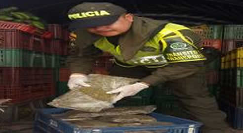 Uniformados de la Seccional de Tránsito y Transporte mediante un puesto de prevención y registro a personas en el sector de Puente Arquía, límite entre Caldas y Antioquia, lograron la captura de dos hombres quienes movilizándose en un camión pretendían transportar ocultos dentro de una carga de frutas y verduras 1.000 kilos de marihuana.Las personas capturadas, el estupefaciente incautado y el vehículo inmovilizado fueron dejados a disposición de la Fiscalía por el delito de tráfico fabricación y porte de estupefacientes. En lo corrido del año, en esta región hemos incautado más de 1 millón 400 mil dosis de marihuana y capturado a 850 personas por el delito de tráfico fabricación y porte de estupefacientes.