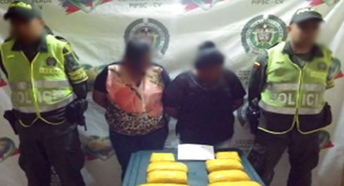 Uniformados adscritos a la Seccional de Tránsito y Transporte mediante labores de prevención, registro y aplicación de las normas de tránsito sobre el kilómetro 39 de la vía que conduce del municipio de Caucasia (Antioquia) al municipio de Planeta Rica (Córdoba) lograron la captura en flagrancia de dos mujeres de 40 y 49 años de edad Estas dos personas se movilizaban como pasajeras en un bus de una reconocida empresa que al ser abordado por los uniformados permitió evidenciar la angustia y desespero por lo que fueron requisadas, hallándoles ocho paquetes adheridos a sus cuerpos con una sustancia solida compacta con características de olor, color y contextura propias de la base de cocaína.Tras corroborar mediante la prueba PIPH, las mujeres capturadas fueron dejadas a disposición de la fiscalía. Según las investigaciones este narcótico iba a ser comercializado en la ciudad de Montería.En lo que va corrido del año, la Policía en esta región ha capturado a 672 personas por el delito de tráfico de estupefacientes e incautado 107 kilos de cocaína, 194 kilos de base de coca, 11 kilogramos de bazuco y 257 kilos de marihuana.