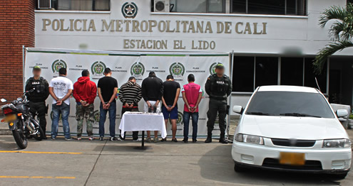 Con la campaña realizada por la Policía Nacional Yo no pago, yo denuncio personal del Gaula Cali desarticularon la banda delincuencial Los Ura dedicada a la extorsión. Con operativos realizados en la calle 12 oeste con 54, barrio Bella Suiza, carrera 12 con calle 22ª, barrio Guayaquil y transversal 25 con calle 28, barrio El Prado, permitió la captura de alias ´Chepo` de 20 años, ´Titi` de 18, ´Pacho` de 23, ´Ancisar` de 23, ´Perros` de 34, ´La Sombra de 35 y ´Kike` de 30 años de edad, quien al parecer sería el líder de la banda delincuencial. Estas personas serían los responsables de la planeación y materialización de extorsiones, desplazamiento forzado y homicidios a residentes y comerciantes al sur de Cali y al parecer en algunos municipios del norte del Valle. De acuerdo a información obtenida, abordaban a las víctimas en su lugar de trabajo en donde les hacían entrega de un celular con un pin para a través de este tomar contacto con la víctima y realizar exigencias que oscilaban entre $100´000.000 y $1.600´000.000 y de no acceder a sus peticiones lo intimidaban de atentar contra la integridad física y familiar. La captura de los seis integrantes de la banda criminal de los Ura se produjo en el momento en el que se disponían a recibir un vehículo por un valor de $30 millones de pesos, producto de la extorsión de la que venía siendo víctima una mujer por una supuesta deuda que había contraído el esposo que se encuentra fallecido desde el 2013. Así mismo esta banda delincuencial podría estar involucrada en la muerte de un hombre el pasado 6 de octubre de 2014 a quien vendrían haciéndole exigencias económicas a cambio de no atentar contra su integridad física y la de su familia. Igualmente habrían sido subcontratados por el ´Clan Usuga` para tener el dominio de extorsiones y microtráfico en el sur de la ciudad de Cali. La Policía Metropolitana de Santiago de Cali invita a la comunidad para que no se dejen intimidar y cuando sean víctimas de extorsión y/o secuestro denuncien a la línea 165 del Gaula de la Policía Nacional, donde profesionales garantizan absoluta reserva. Los capturados fueron dejados a disposición de las autoridades competentes.