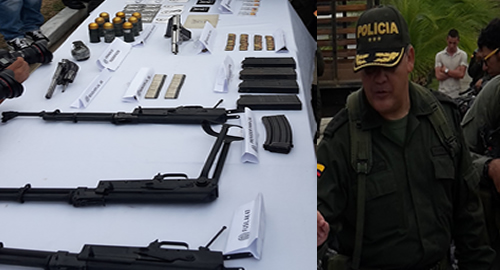Localizado el mayor centro de acopio de armas y explosivos de alias "Gavilán", segundo cabecilla de la estructura criminal. Entre ellos cabecillas regionales, sicarios, extorsionistas y narcotraficantes sindicados de coordinar la salida de cocaína desde las costas de Urabá, hacia Centroamérica y Estados Unidos.En las últimas horas, durante una operación de asalto en zona rural del corregimiento El Tomate de San Pedro de Urabá (Antioquia), comandos especiales y hombres jungla ocuparon el mayor centro de almacenamiento de armas y explosivos de la banda criminal.En tres caletas bajo tierra, fue ubicado abundante material bélico que se presume pertenecería a alias "Pipón" hermano de alias "Gavilán, segundo en la banda criminal. Entre los elementos encontrados están: 4 fusiles AK – 47, 9 granadas de 40 milímetros, más de 12 mil cartuchos para fusil y cerca de 500 para pistolas. Así mismo dentro de las canecas enterradas, también se encontraron 170 kilogramos de cocaína. Gran parte de alijo estaba marcado con la palabra (ROMAIN J), el mismo logotipo que tenían las cerca de 3 toneladas y media de droga decomisadas hace 8 días en las selvas de Chocó. De acuerdo a lo informado esta coincidencia evidenciaría que los dos cargamentos serían de alias "Gavilán", quien ante el asedio de las autoridades, abandonó su escondite entre los departamentos de Córdoba y Antioquia, y se instaló en zonas de difícil acceso en Chocó, muy cerca de la frontera con Panamá.Otro resultado destacado en la acción sostenida contra el "Clan Úsuga" fue la captura del señalado mayor extorsionista en la región de Urabá, conocido con el alias de "Zafiro", y la detención de alias "Sergio", supuesto jefe de sicarios de la organización, responsable de varias muertes violentas en los municipios de Apartadó, Chigorodó y Carepa (Antioquia).Los dos delincuentes fueron judicializados por los delitos de concierto para delinquir agravado con fines de extorsión y homicidio. Según información recolectada por investigadores de la Dirección de Investigación Criminal – DIJIN-, alias "Zafiro" convocaba a los comerciantes y transportadores de Urabá a reuniones con alias "Sergio", en las que les exigían el pago de un millón de pesos mensuales, a cambio de no atentar contra los establecimientos o vehículos.Se indica que varias de las muertes violentas por los denominados ajustes de cuentas entre integrantes del "Clan Úsuga" fueron ejecutadas por estos criminales al servicio de alias "Nicolás" y alias "Inglaterra" presunto cabecilla del componente armado de la estructura.En cumplimiento de la intervención a Urabá, la Policía Nacional ha realizado 31 operaciones en 9 municipios entre los departamentos de Córdoba, Antioquia y Chocó. Son más de 5 las toneladas de cocaína decomisadas, 3 laboratorios destruidos, 6.3 hectáreas de coca erradicadas y 12 fincas ocupadas para iniciar procesos de extinción de dominio, por estar invadidas con cultivos ilícitos.Por último dentro del aspecto social, 1.500 niños han sido capacitados en el Programa DARE de prevención al consumo de drogas, mientras que la Dirección de Carabineros y Seguridad Rural, avanza en asesorías agrarias, visitas focalizadas a zonas productivas y procedimientos veterinarios a animales utilizadas para labores productivas en la región.