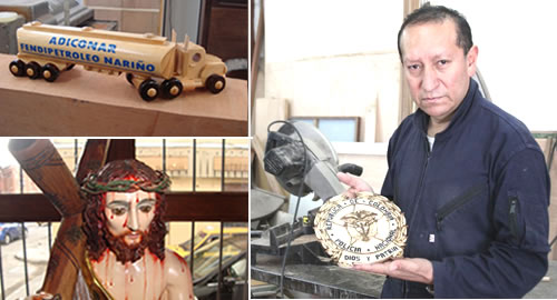 Hernando Dorado Madroñero, nacido el 27 de mayo de 1956, oriundo del municipio de Tangua – Nariño, ingresó a la Policía Nacional el 01 de enero de 1976, culminando su carrera de Agente en el año de 1996 e incorporándose nuevamente a la institución como personal civil en las labores de ebanista, en el año 1997, llevando a fecha 39 años sirviendo a nuestra sagrada institución.Desde muy pequeño Hernando, se caracterizó por su habilidad del trabajo en madera, logrando con gran esmero y paciencia un altísimo grado de perfección en todos sus trabajos, característica propia de los artesanos nariñenses.Gracias a su esmero y dedicación, ha logrado desarrollar trabajos de escudos de nuestra Policía Nacional, Ejército Nacional, insignias, bastones de mando, inscripción de nombres policiales así como también báculos para la Iglesia Católica, lo que hace de nuestro artesano una persona digna de reconocimiento a nivel nacional e internacional.Un oficio aprendido en un pequeño taller de un tío, el ex Agente Hernando Dorado, adscrito al Departamento de Policía Nariño, ha convertido este oficio en una obra maestra, realizando una gran cantidad de trabajos de talla en madera, tales como bastones para algunos Directores Generales, Subdirectores y un gran número de oficiales superiores que tienen en sus manos una parte de nuestro querido nariñense y por ende de nuestras raíces a través de sus pequeñas pero grandes artesanías de talla en madera.Para el año de 1995, en aquel entonces comandante de Departamento General Fortunato Guañarita Legarda (q.e.p.d) encomendaría al ex Agente, realizar un báculo especial para enviarlo al exterior. En ese entonces al ex Agente le inquietaba para quien era aquel trabajo realizado el cual lo diseño desarmable y portátil, para que su transporte fuese más fácil, elemento en el cual estaría incrustado un crucifijo, confeccionado con madera de chonta, ébanos, naranjillo y finas incrustaciones de oro. Al pasar el tiempo, llegaría una noticia inesperada para Dorado Madroñero, un comunicado del Vaticano mediante el cual su Santidad Juan Pablo II, expresaba su gratitud y admiración por los presentes colombianos.Se queda corta pequeña reseña de la que en realidad es la de su talento y sobre sus obras maestras, pero gran historia de un hombre, que dentro de su humildad ha llegado al corazón de muchos a través de su oficio y su profesión como ebanista, obras talladas por su magno talento y la vocación de su trasegar por su Policía Nacional de Colombia.