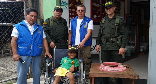La Policía Nacional está presente en los rincones más retirados mediante el liderazgo de un grupo de uniformados y funcionarios del fondo rotario quienes le cumplieron el deseo a Oscar.Oscar un menor de 6 años con parálisis cerebral fue el motor que movió desinteresadamente a hombres y mujeres policías de buen corazón que trabajaron para contribuir y mejorar la calidad de vida del niño ante sus condiciones especiales de salud y algunas económicas que vive su humilde familia; gracias a esa gestión ahora recibe ayuda por parte de residentes en el puerto. Mientras este "Ángel de la Vida" disfrutaba del afecto de los policiales, allegaba a su casa una sorpresa más, una silla de ruedas para ayudarle en su desplazamiento.