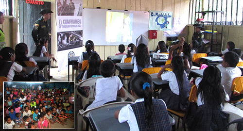 El grupo de Protección Ambiental y Ecológica adscrito al Departamento de Policía Vaupés, proyectó un video educativo con personajes animados "cuidemos el agua"; cerca de 34 estudiantes en medio de preguntas y respuestas comentan y aprenden cuál es la finalidad de fomentar la conciencia en la conservación de ecosistemas sanos que garanticen el bienestar humano especialmente en el marco de la temporada denominada "semana santa" donde se espera aumente la visita de turistas a sitios de interés ecológico en nuestra tierra de la selva.Al final de la actividad la Policía Ecológica logra que infantes y adolescentes se comprometan a ser como esos seres mitológicos que protegen la tierra y el medio ambiente ante la visita de turistas que llegan todos los años a la mágica selva del Vaupés colombiano.Por otro lado ellos guiarán con alegría y amor a los visitantes para evitar impactos negativos en el ecosistema, además ayudarán a incentivar el respeto por sus valores culturales y religiosas que por estos días también se reafirman.