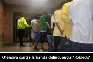 Medellín. Luego de un proceso de investigación, uniformados capturaron a siete integrantes de la banda delincuencial ¿Los Picuas¿, dependientes de la organización delincuencial integrada al narcotráfico ¿Robledo¿, que delinque en la comuna trece. Luego de seis diligencias de allanamiento y registro simultaneas en los barrios 20 de Julio, Nuevos Conquistadores e Independencias, se logró la captura de seis de sus integrantes y la conducción de un adolescente. Entre los capturados se encuentran alias ¿Omar¿ y ¿yuca¿, cabecillas de este grupo delincuencial que posteriormente fueron dejados ante la autoridad competente por el delito de desplazamiento forzado agravado.