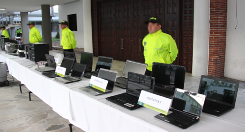 Funcionarios de Policía judicial adscritos a la Metropolitana de Bogotá, allanaron seis prenderías de la carrera décima entre calles séptima y octava, que de acuerdo con informaciones y denuncias de la comunidad, estaban comercializando productos hurtados o de dudosa procedencia.En los allanamientos, la Policía Nacional recuperó 85 elementos entre computadores, electrodomésticos y equipos varios avaluados en más de 50 millones de pesos. Causó interés entre los funcionarios de Policía judicial, encontrar una cápsula de oxígeno la cual había sido hurtada el 7 de octubre de 2013 cuando delincuentes irrumpieron de manera violenta a un inmueble de la localidad de Kennedy en donde habitaban dos adultos mayores que superaban los 90 años. Este equipo además de proporcionar el oxígeno vital para la vida de estos adultos mayores, está avaluado en 3 millones de pesos.La Policía Nacional en coordinación con la Fiscalía General de la Nación, están iniciando procesos prenderias_bogota.zipde extinción de dominio contra estos inmuebles, en la medida que se comprobó la venta y comercialización de objetos hurtados.De igual forma se invita a las personas que reconozcan o sospechen que sus objetos hurtados tuvieron como paradero estas prenderías, a que se dirijan a la Sijín de la Metropolitana de Bogotá, para poder tener de vuelta sus artículos.