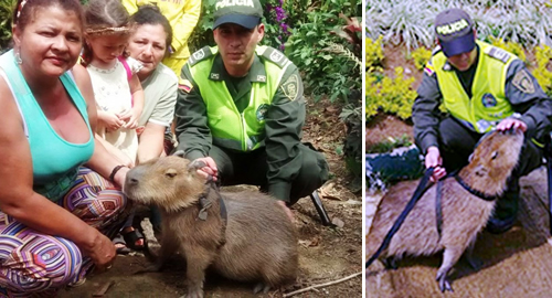En zona rural, vereda la palestina, finca Las Chumas, en cumplimiento a las estrategias del Plan de Acción Ambiental 2015 y como resultado de las campañas de sensibilización a la comunidad realizadas en contra del Tráfico Ilegal de Fauna y Flora Silvestres, la Policía Ambiental recibió con agrado la entrega voluntaria de la especie de nombre científico Hidrochaerys Hidrocheris comúnmente "Chiguiro".La ciudadana de 44 años de edad, argumentó que la trataban como animal doméstico y por eso la llamaban "Zaira", la mantenían desde que era tan solo una cría, y permaneció en la finca suelta en el solar durante ocho meses, era alimentada con todo tipo de comida de sal, carnes de pollo, res, cerdo, pescado, leche, agua panela, agua, galletas y todo tipo de frutas y verduras.La entrega fue considerado como histórico en el municipio teniendo en cuenta que hubo un valioso despliegue de medios de comunicación comunitaria, resaltando e integrando a la comunidad en torno a esta acciones que favorecen el equilibrio ecológico sobre el interés personal; así mismo durante la jornada de entrega se promovió entre la ciudadanía el respaldo a las actividades de la Policía Ambiental y Ecológica. Luego de recibir muchos elogios "Zaira" recibió un baño y se dispuso para quedar a disposición de Corantioquia Dirección General de Medellín.La Policía Nacional admira a ciudadanos que preservan nuestras especies y más aún agradece la conciencia adquirida devolviéndolas a su habitad natural para mejorar sus condiciones de vida.