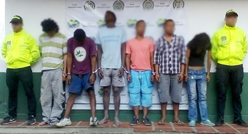El Departamento de Policía Cauca, en el marco Plan Choque Seguro, desarticuló la banda delictiva 'Los Callejeros', la cual se dedicaba a la comercialización de dosis de marihuana y bazuco en espacios públicos del municipio de Santander de Quilichao, norte del Cauca. Gracias a la colaboración de la comunidad y las acciones investigativas que permitió este golpe al trafico local de estupefacientes en menores cantidades surgió de las denuncias de comerciantes y vecinos de la plaza de mercado de este municipio, quienes fueron importantes para este operativo, decidieron informar ante las autoridades la forma cómo 'Los Callejeros' vendían sustancias estupefacientes entre los consumidores de esta zona quilichagüeña. Así se inició un seguimiento de los seis integrantes de este grupo delictivo, entre ellas una mujer de 30 años de edad. Mediante esta labor se constató que estas personas se escondían en buses de servicio público para evitar ser capturados por la Policía Nacional. Luego, los cabecillas delincuenciales organizaban los alucinógenos en dosis; o en el caso de bazuco, aumentaban la masa de esta sustancia con otros elementos como cementos o cal para después organizarlo en dosis y así distribuirlos entre los vendedores, 'jíbaros', de los diferentes sectores de esta localidad como la plaza de mercado. Con el fin de evitar los controles que adelanta la Policía en esta zona, los 'jíbaros' escondían las dosis entre sus partes íntimas, las enterraban en el césped o entre los árboles de la zona. Acciones que se realizaban en medio del alto número de transeúntes. Tras las acciones investigativas, se obtuvieron las correspondientes órdenes de captura, las mismas se materializaron cuando los individuos fueron ubicados en los barrios El Porvenir, Antonio Nariño, entre otros. Posteriormente fueron judicializados por los delitos de concierto para delinquir con fines de narcotráfico y fabricación, distribución o porte de estupefacientes para después ser cobijados con medida de aseguramiento en centro carcelario. Hay que recordar que estas capturas evitan que sigan comercializando estupefacientes, con la cual se afecta la salud pública de los ciudadanos, permitiendo que la comunidad tengan derecho a disfrutar de espacios de seguridad y de sana convivencia.
