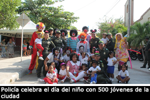 Cartagena D. T y C. Estas actividades buscan crear vínculos de confianza y garantizar a los niños una jornada amena y recreativa. Mediante una campaña de gestión interinstitucional, dentro de la Estrategia Institucional de Convivencia y Seguridad Ciudadana enmarcada dentro del Plan Integral Policial ¿Corazón Verde¿. La Policía Metropolitana de Cartagena de Indias a través de su Grupo de Infancia y Adolescencia, en el marco de la celebración del mes del niño llevó a cabo el evento. En el desarrollo de la programación los niños fueron homenajeados de una manera creativa, realizando actividades lúdico-recreativas y deportivas, seguida de dinámicas y juegos con el fin de hacer sentir a los niños y niñas en un ambiente cómodo y agradable ante este importante mes, logrando así la participación masiva de los infantes, promoviendo actitudes positivas y un acercamiento con los habitantes del sector. Con la materialización de estas actividades, nuestra Institución demuestra su compromiso con la comunidad cartagenera en especial con los niños, niñas y adolescentes.