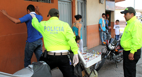 Información de la ciudadanía advirtió a la Policía acerca de esta modalidad delictiva, pues el sujeto al percatarse de la presencia de personal uniformado aparentaba ser un vendedor informal.Posteriormente personal encubierta de la institución, mediante labores investigativas establece el modus operandi de este sujeto, pues camuflaba entre su mercancía junto con dulces, cigarrillos, chicles, y demás, las dosis de estupefacientes. Precisamente, el hombre fue capturado en flagrancia en vía pública sector de la galería del municipio de Chinchiná, cuando sacaba de su "chaza" y le entregaba a uno de sus clientes 16 gramos de marihuana.Al verificar sus antecedentes penales, le figuran al parecer cuatro sentencias condenatorias desde el año 2009 a la fecha, esta persona de inmediato fue puesta disposición de la autoridad competente.Como uno de los principales propósitos para este año 2015, la Policía tiene entre sus retos seguir atacando de manera contundente el tráfico de drogas en todo el departamento, delito que por su complejidad, da origen a hechos criminales y causa de desestabilidad social entre la misma la comunidad.