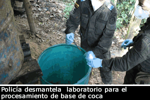 Sardinata, Norte de Santander. Con este ya son siete las estructuras destruidas por la Institución. Sardinata, Norte de Santander. Personal adscrito a la Seccional de Investigación Criminal SIJÍN, llevó a cabo la operación "Relámpago" contra el narcotráfico, en la que se logró la destrucción en zona rural del Municipio de Sardinata, de un laboratorio para el procesamiento de base de coca, con una capacidad de producción mensual de 300 kilos del alcaloide. El complejo cocalero fue ubicado gracias a intensos trabajos de inteligencia y policía judicial que dieron como resultado su hallazgo en inmediaciones de la vereda La Esperanza, hasta donde llegaron los uniformados encontrando las estructuras de madera y tejas de zinc, en las que había 60 kilos de base de coca listos para iniciar su proceso de conversión a clorhidrato de cocaína. En el laboratorio fueron destruidos insumos líquidos y sólidos como gasolina y cemento, así como canecas metálicas, recipientes plásticos y 250 kilos de hoja macerada utilizada para el procesamiento de alucinógenos. Dentro del operativo, los uniformados también encontraron una plantación de aproximadamente una hectárea de hoja de coca, en los alrededores del laboratorio, la cual fue erradicada de forma manual por los policiales. Las muestras y diligencias del procedimiento de destrucción de este laboratorio, que puede llegar a estar avaluado en 200 millones de pesos y que según las investigaciones pertenecía a la estructura financiera del bloque Antonia Santos del grupo narcoterrorista de las FARC, fueron dejadas a disposición de la Fiscalía y se dio inicio al proceso de extinción de dominio del predio.