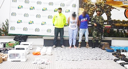 En las últimas horas miembros de la Policía Nacional lograron el desmantelamiento de lo que sería el mayor laboratorio de preparación y dosificación de sustancias estupefacientes, en el lugar se logra también la captura de un hombre y una mujer que oscilan entre los 20 y 23 años de edad y la aprehensión de un menor de edad, las cuales presuntamente se dedicaban a la fabricación y comercialización de la droga.La operación se logró tras un proceso investigativo llevado a cabo por uniformados adscritos a la SIJIN, en coordinación con unidades del Ejército Nacional, es así como se logra la intervención a un inmueble ubicado en sector rural de la vereda Villa Patricia jurisdicción del municipio de Chigorodó Antioquia; el operativo se realiza la incautación de más de 40 mil dosis de diferentes sustancias, entre ellas marihuana 21.878 gramos, base de coca 2.148 gramos y clorhidrato de cocaína 3.900.Además se incautaron varios elementos utilizados para la fabricación y comercialización del alcaloide tales como, grameras, hornos microondas, papel para fabricación de cigarrillos, marquillas entre otros.Las informaciones de inteligencia e investigaciones que se llevan a cabo apuntan a que este lugar utilizado como centro de acopio, procesamiento, dosificación y distribución de estupefacientes, hacen parte de una de las fuentes de financiación del Crimen Organizado "Clan Úsuga".Los capturados y el menor fueron dejados a disposición de la autoridad competente.