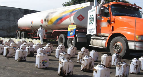 Pachaquiaro. 18.738 galones en combustibles y 35.000 bultos de cemento de dudosa procedencia fueron incautados por la Seccional de Tránsito y Transportes.