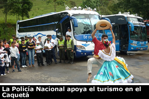 Florencia, Caquetá. Como muestra del compromiso que tienen las autoridades con el sector turístico en la región, se ha venido realizando en los últimos días una bienvenida especial para los turistas que arriban a este Departamento. Esta actividad se ha desarrollado pensando en promover las fiestas San Pedrinas que se disfrutarán por estos días en el Caquetá, se hacen presentaciones alusivas a la región como bailes y cantos representativos. Para estas actividades ha sido fundamental el apoyo del Grupo de Danzas de la Casa de la Cultura, quienes han liderado la iniciativa y han permitido que más personas conozcan los rasgos culturales de esta zona. Además gracias a empresas privadas se han entregado a cada uno de los visitantes dulces autóctonos, los cuales están fabricados con frutas como el arazá, cocona y copoazú. Más de 200 uniformados colaborarán en el desarrollo de las actividades de este festival, quienes al mismo tiempo dan múltiples recomendaciones a los turistas para que no sean víctimas de delitos.