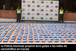 San José de Cúcuta. Como resultado de la política de seguridad y convivencia ciudadana implementada por la Policía Nacional, se logró dar importante golpe a las redes del narcotráfico con la incautación de más de media tonelada de marihuana.La incautación del alijo se produjo en un caño de aguas residuales ubicado en el barrio Las Cumbres de la Comuna Seis de esta capital, hasta donde llegaron uniformados del Comando de Atención Inmediata (CAI) Industrial, luego que mediante una llamada realizada al celular del cuadrante la comunidad alertara de la presencia de unos bultos sospechosos en el lugar.Ante el reporte, las patrullas del cuadrante se desplazaron hasta la zona y hallaron varios bultos que contenían gran cantidad de paquetes que contenían la sustancia alucinógena en diferentes cantidades con un peso aproximado de 540 kilogramos.De acuerdo con las informaciones obtenidas este alucinógeno vendría procedente del sur del país y sería distribuido mediante la modalidad de narcomenudeo