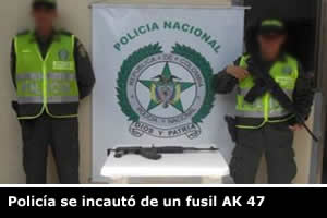 Pereira, Risaralda. Las acciones operativas se ejecutaron en zona boscosa del Corregimiento de Arabia. Pereira, Risaralda. Continuando con la ejecución del modelo de seguridad ciudadana, en el marco del Plan Nacional de Vigilancia Comunitaria por Cuadrantes, la Policía Metropolitana de Pereira se incautó de un fusil AK 47, un proveedor y cinco cartuchos calibre 5.56 en zona boscosa del Corregimiento de Arabia de la capital Risaraldense. Las acciones operativas se ejecutaron gracias a la información suministrada por la Red de Cooperantes, donde se alertaba sobre la presencia de una munición de guerra en zona boscosa de la vereda Yarumal, Corregimiento de Arabia; de inmediato los uniformados policiales inspeccionaron el lugar y efectivamente entre arbustos hallaron unas bolsas que en su interior contenían un fusil AK 47, un proveedor y cinco cartuchos calibre 5.56. Según las primeras investigaciones, esta arma sería utilizada por los delincuentes para cometer hurtos en las fincas aledañas a este sector. El arma y demás elementos incautados fueron dejados a disposición de la Autoridad competente.