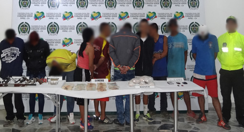 Gracias a labores investigativas y de inteligencia iniciadas el año 2014, se dio captura a un grupo de personas que venían realizando actividades ilícitas en diferentes sectores de la ciudad, teniendo en cuenta que presuntamente se dedicaban al almacenamiento y comercialización de estupefacientes.En este operativo se logró la captura de nueve hombres y una mujer quien fue sorprendida en el lugar de los hechos al momento del registro. De igual manera en el centro penitenciario de Picaleña, se realizó imputación de cargos a tres personas más. En los hechos incautamos 11 celulares, cinco armas de fuego, 6.284 dosis de bazuco, dos dosis de marihuana, dos memorias usb, más de cuatro millones de pesos en efectivo al parecer producto de la actividad ilícita, una balanza digital, y cartuchos de diferentes calibres. Con las acciones afectamos la cadena delincuencial para recuperar los barrios San José, Industrial, Hipódromo, instituciones educativas y parque San José.