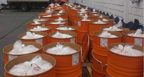 Integrantes de la Dirección de Antinarcóticos de la Policía Nacional adscritos a la Compañía Control Portuario Buenaventura, hallaron un cargamento con 262 kilos de clorhidrato de cocaína que se encontraban camuflados en canecas que contenían pulpa de fruta con destino a Barcelona España. La sagacidad y la pericia de los uniformados en este terminal marítimo, permitieron perfilar un contenedor que de acuerdo a los reportes suministrados a las autoridades portuarias, transportaba 114 canecas metálicas con pulpa de guayaba congelada tipo exportación. Al extraer la pulpa de fruta, se observó que en el fondo de la totalidad de las canecas contenían un elemento diferente al reportado, con apariencia inicial de silicona envuelta en plástico transparente con forma circular y olor característico al estupefaciente, al realizarle la Prueba de Identificación Preliminar Homologada P.I.P.H, arrojó resultado positivo para clorhidrato de cocaína con un peso de 262 kilos. Con ésta incautación se deja al descubierto una nueva modalidad de camuflaje y ocultamiento que las organizaciones narcotraficantes utilizan para tratar de evadir los controles de las autoridades, quedando demostrado una vez más, la capacidad y el profesionalismo del personal policial en la lucha constante contra el tráfico de estupefacientes en el país.Este hallazgo afecta ostensiblemente el sistema criminal del narcotráfico en el transporte de sustancias estupefacientes hacia el exterior desde los departamentos de Cauca y Valle del Cauca.La sustancia incautada tendría un valor aproximado a los 15.6 millones de dólares en territorio Europeo, evitando la comercialización de cerca de 655.000 dosis del estupefaciente en el narcomenudeo.