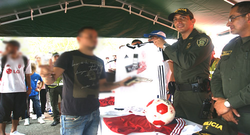 Esta estrategia tuvo como objetivo principal promover la entrega voluntaria de armas de fuego y armas blancas por parte de la barra de Fútbol Barón Rojo Sur del América de Cali y así disminuir de manera significativa hechos de violencia en encuentros deportivos.El epicentro fue el parque de las Bandera, lugar donde varios integrantes de este grupo, comunidad y medios de comunicación, se reunieron para abrirle la puerta al dialogo, la tolerancia y la paz. Este ha sido un trabajo adelantado por mucho tiempo, en donde se ha mantenido un diálogo permanente con los jóvenes integrantes de la barra, quienes fueron premiados con implementos deportivos del equipo América de Cali por la decisión de entregar las armas y por su gesto generador de paz.Trabajamos para construir comunidades pacíficas con su apoyo lo lograremos.