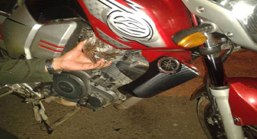 Un trabajo de nuestros uniformados de la Seccional de Tránsito y Transporte, logro la captura de una persona con 5.400 gramos que al parecer era de clorhidrato de coca y la inmovilización de una motocicleta donde era transportado el alijo que iba a ser distribuido en la capital del Meta.El operativo se realizó mediante un puesto de control en el sector del Peaje de Puente Amarillo, donde mediante registro y control a vehículos sobre esta vía nacional, fue requisada una moto en el cual se halló el estupefaciente.La coca venia en los lados laterales del tanque de combustible y debajo del sillín camuflado en cinco paquetes envueltos con papel, en un total de 5.400 gramos de una sustancia la cual al practicarle la prueba preliminar de PIPH arrojo positivo para clorhidrato de cocaína.El capturado de 30 años de edad, quedo a disposición de la autoridad competente por el delito de Fabricación Tráfico y Porte de Sustancias Estupefacientes.
