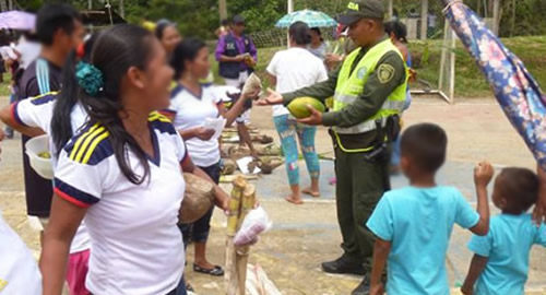 Uniformados se desplazaron hasta el asentamiento de la comunidad indígena etnia Ticuna, en San Juan del Sopó en las riberas del rio amazonas, a más de 100 kilómetros de distancia de la ciudad capital.Allí promovieron entre las nuevas generaciones, el rescate de los valores tradicionales esenciales que han permitido a través de la historia que la armonía, la paz, la convivencia pacífica y la cooperación, sean los factores determinantes que los distinguen de otras comunidades indígenas en Colombia. El ritual ancestral integra a las madres de familia y niños, en el intercambio de los mejores frutos y semillas entre los miembros de otros asentamientos que conviven al amparo del imponente rio Amazonas y sus afluentes, los cuales hacen de la selva el manto verde que por siglos les ha suministrado lo necesario para vivir en paz y con abundancia. La Policía Nacional en sus recorridos por estas apartadas zonas de la geografía, participa, reaviva y promueve el rescate de estas prácticas sanas que contribuyen significativamente a la convivencia pacífica.