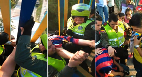 La oportuna reacción de dos uniformados adscritos al CAI El Viaducto de la Policía Metropolitana de Bucaramanga, lograron salvarle la vida a un ciudadano de 23 años de edad, momentos en que éste jovén equivocamente habría tomado la fatal decisión de quitarse la vida lanzandose del viaducto García Cadena de esta ciudad.La patrulla del cuadrante conformada por el Subintendente Juan Orduz Ortiz y el Patrullero Diego Unigarro Ortiz, al realizar labores de vigilancia y control por el sector del viaducto sentido Norte - Sur, observaron a este hombre que en actitud sospechosa caminaba por el puente, el cual al notar que los uniformados continuaron la marcha sobrepasó las barandas de seguridad e intentó lanzarse del viaducto, quedando suspendido de sus manos.La oportuna reacción de los uniformados, permitió auxiliar a este hombre tomándolo de un brazo y con la ayuda de la comunidad, lo retiraron del sitio donde corría peligro su vida, luego manifestó que lo hacía por problemas económicos. Posteriormente los policías luego de ofrecerle ayuda, hablaron varios minutos hasta lograr recuperar su estado emocional, posteriormente lo trasladaron a un centro asistencial para que ecibiera la respectiva asistencia de profesionales de la salud.La Policía Nacional invita y agradece a la comunidad informar oportunamente cualquier hecho que ponga en riesgo la vida e integridad de los ciudadanos. Línea de emergencia 123 a nivel nacional o al celular único de los cuadrantes.