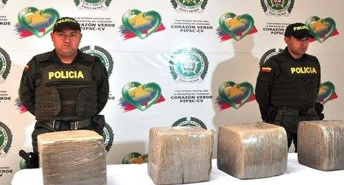 En la implementación del Modelo Nacional de Vigilancia Comunitaria por Cuadrantes y el Plan Choque "VAMOS SEGUROS", unidades adscritas al Grupo de Reacción Motorizada GAMAS, logran la incautación de cuatro bloques de marihuana prensada envuelta al parecer en dos costales la cual estaba lista para ser comercializada en dosis en el departamento.Mediante labores de inteligencia y fuente humana los uniformados son alertados acerca del descargue de los costales sospechosos los cuales fueron camuflados en el borde de la carretera del sector del barrio Gaitán, antes de llegar al lugar varios sujetos notan la presencia policial y emprenden la huida.Los uniformados desplegaron la inspección al lugar donde hallan estos costales que tenían en su interior 4 bloques prensados de marihuana siendo incautados y puestos a disposición de la autoridad competente.