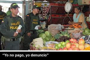 Villavicencio, Meta. En desarrollo de la Estrategia Integral Contra la Extorsión en Menor Cuantía, la Policía se ha propuesto estar más cerca de la población llanera, brindándole apoyo mediante distintas herramientas comunicativas para que no sea victima de la microextorsión. Unidades del Gaula se encuentran brindando asesoría personalizada, campañas y capacitaciones a comerciantes en la Central de Abastos de Villavicencio, con el fin de prevenir delitos de extorsión que afecten la convivencia y seguridad de la ciudadanía. Combatiendo la extorsión, la Policía pone a su disposición la línea 165 para que denuncie amenazas que atenten contra su integridad o la de sus familiares.
