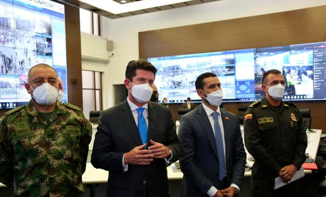 Declaración actualizada del Director General de la Policía Nacional, general Jorge Luis Vargas Valencia, el ministro del Interior, Daniel Palacios, y el ministro de Defensa Nacional, Diego Molano Aponte. En la misma se hace referencia a los hechos de vandalismo registrados en Cali, las capturas que hasta el momento se han hecho efectivas, las intervenciones de la Policía Nacional para restablecer el orden y la convivencia, y en general el desarrollo de esta jornada de manifestaciones en el país.