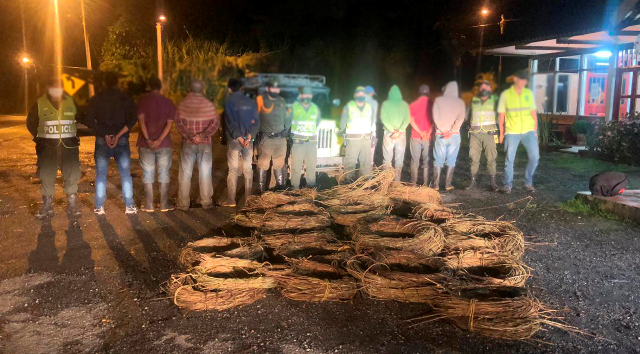 En la vereda el manzano alto reserva natural Otún Quimbaya en el municipio de Pereira, a través de llamada telefónica las unidades policiales fueron alertados acerca de daños en zona protegida de esta jurisdicción trasladándose al lugar para hacer la verificación, logrando la captura de ocho hombres con edades entre los 30 y los 60 años.