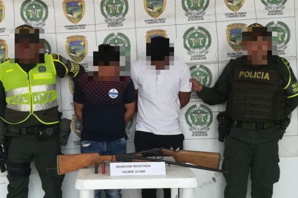 La segunda acción policial se realizó en el km 23 vía San Roque –Bosconia, donde fueron capturados una persona de 18 años de edad y otra persona de 27 años de edad, natural de Chiriguaná, a quienes se les encontró en su poder un arma de fuego tipo escopeta, calibre 16 con 10 cartuchos, un arma de fuego tipo escopeta, calibre 12 con 15 cartuchos para la misma; capturados, armas de fuego y munición incautada fueron dejados a disposición de la fiscalía en turno de Chiriguaná, como presuntos responsables del delito de tráfico, fabricación o porte de armas de fuego, municiones o explosivos.