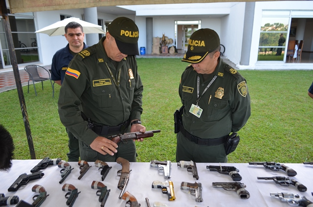 De igual forma, en diferentes procedimientos policiales se han incautado 185 armas de fuego, en aplicación al Decreto 2535 de 1993 y la Ley 906 de 2004 Código de Procedimiento Penal, las cuales posteriormente son entregadas al departamento de control de comercio de armas para su respectiva destrucción, y estos residuos a su vez son llevados a una empresa siderúrgica para su respectiva fundición.