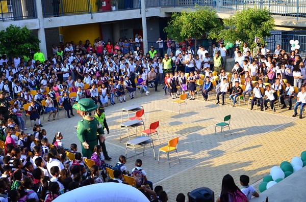 El sitio escogido para dar inicio formal a la estrategia “Juntos Por Los Niños De Regreso A Clases Más Cerca Del Ciudadano”, fue el Mega Colegio Oswaldo Quintana Quintana, ubicado en la urbanización Lorenzo Morales de la ciudad de Valledupar, hasta donde llegaron las especialidades de la policía nacional como los son SEPRO, GAULA, PRECI, SETRA, CARABINEROS y otra unidades, donde se instalaron diferentes stand informativos para brindar recomendaciones importantes a la comunidad estudiantil y a los padres de familia.