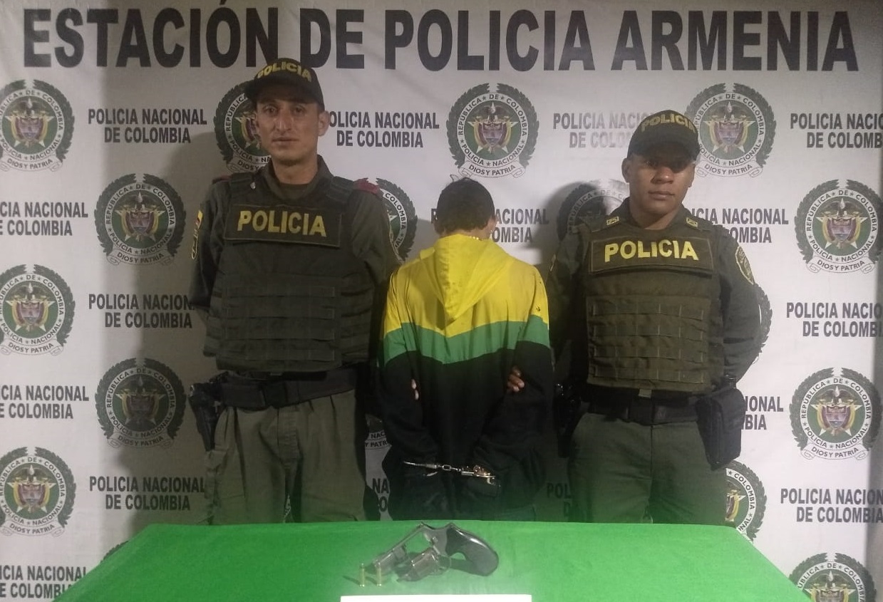Capturamos en Armenia a "juancho" por portar un arma de fuego y estupefacientes